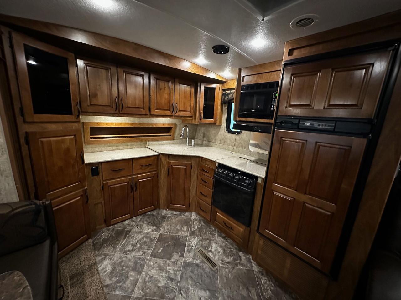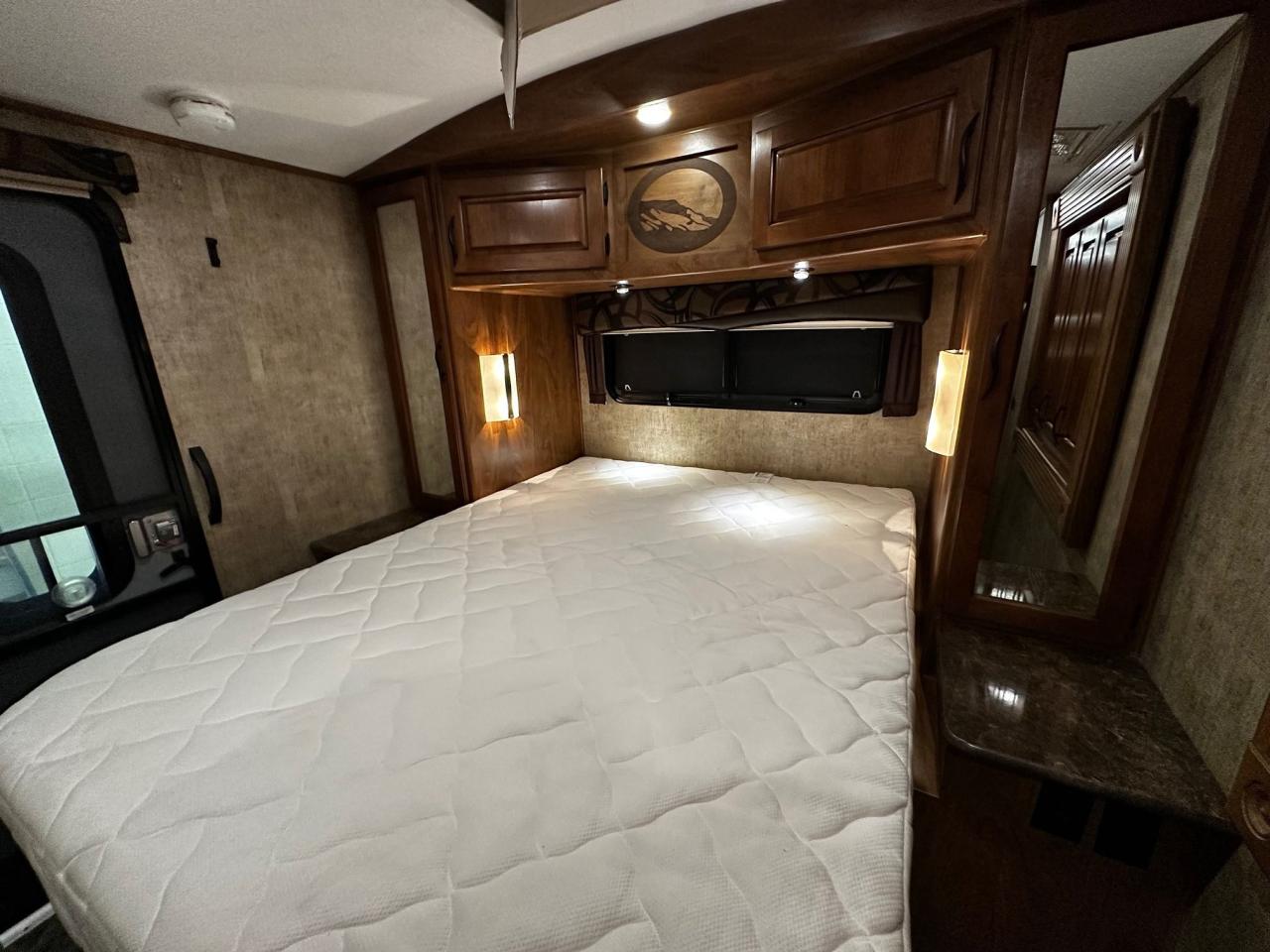 Dual 30 # LP Tanks, Black Tank Flush, Large Cargo Area, Slide Out Rear Bumper, 10 Gal Gas/ Elec Water Heater, Aluminum Folding Steps, Entry Assist Handle, Exterior Speakers, Large Booth Dinette, Bedroom & Living Room TV, Leather Swivel Rocker Recliner, LP/AC Fridge, Solid Surface Countertops, Microwave, Range Hood, Pleated Privacy Shades,