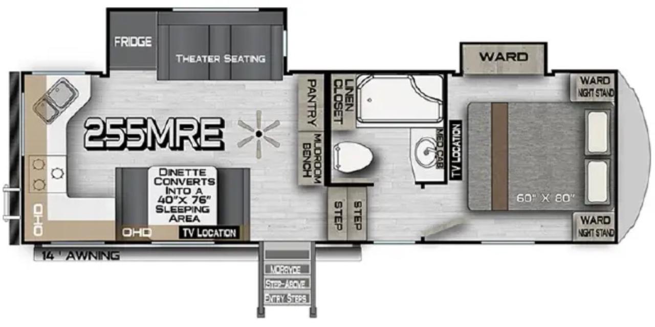 Auto Level, Weatherguard Awning, Bedroom TV, 15K Air Conditioner, 2" Receiver Hitch, Holding Tank Heat Pads, 600W Solar Package