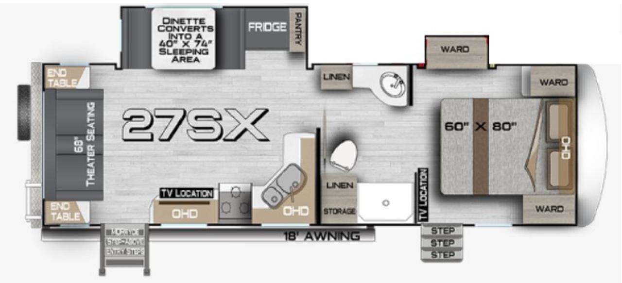 SolX6 600W Solar Package, LED Lighting, Interior Command Center, 10 Cu Ft 12V Refrigerator, Convection Microwave, Daylighter Skylight w/Shade, LPG Quick Connect, Black Water Flush System, Exterior Shower, Winterization and Bypass System, 10 Gal Gas/AC Water Heater, Ducted AC w/ Digital T-Stat, 12V LED Awning, TV Antenna, Exterior Speakers, Battery Disconnect, Solid Surface Countertops, Slow Rise Night Shades, Premium Fan, Queen Mattress, USB Charge Ports, Recessed Storage Headboard.