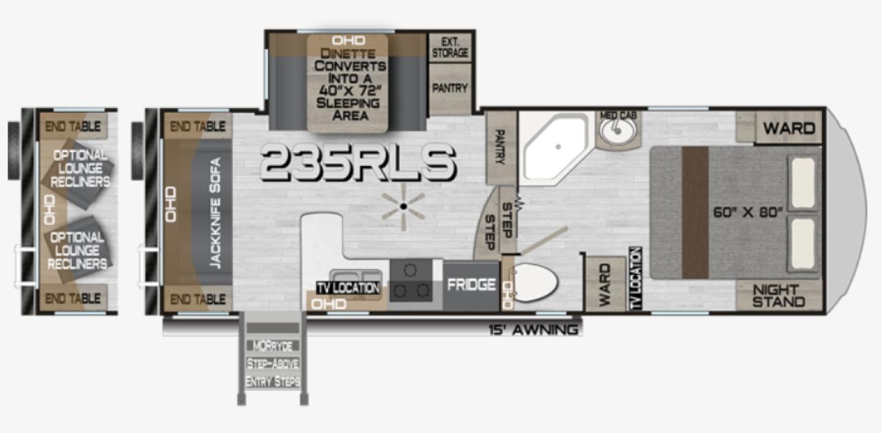 Stainless Steel Appliances, Built in Microwave, 6 gal Gas/Electric Water Heater, AC w/Digital T-Stat, 12V LED Awning, TV Antenna, Interior Command Center, Solid Surface Countertops, Fabric Day/Night Window Shades, Fantastic Fan, USB Charge Ports, Bathroom Skylight, Ceiling Fan, Generator/Satellite Ready.