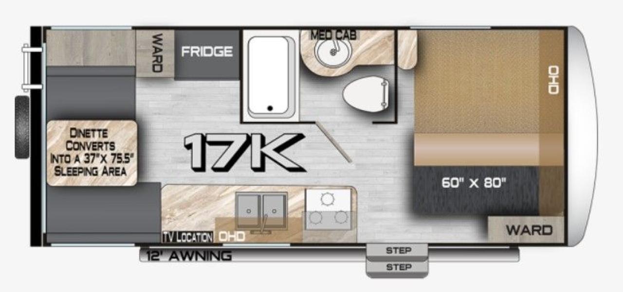 Northwood Built Chassis, Full Weld Thick Wall Aluminum Construction, Corona Treated Fiberglass, High Density Block Foam Insulation, Diamond Plate Gravel Guard, Cathedral Arched Ceiling, Fiberglass Front Cap, Heated and Enclosed Holding Tanks, Thermal Pane Windows