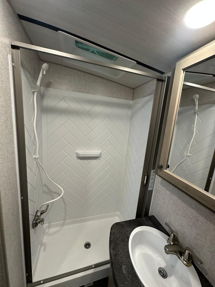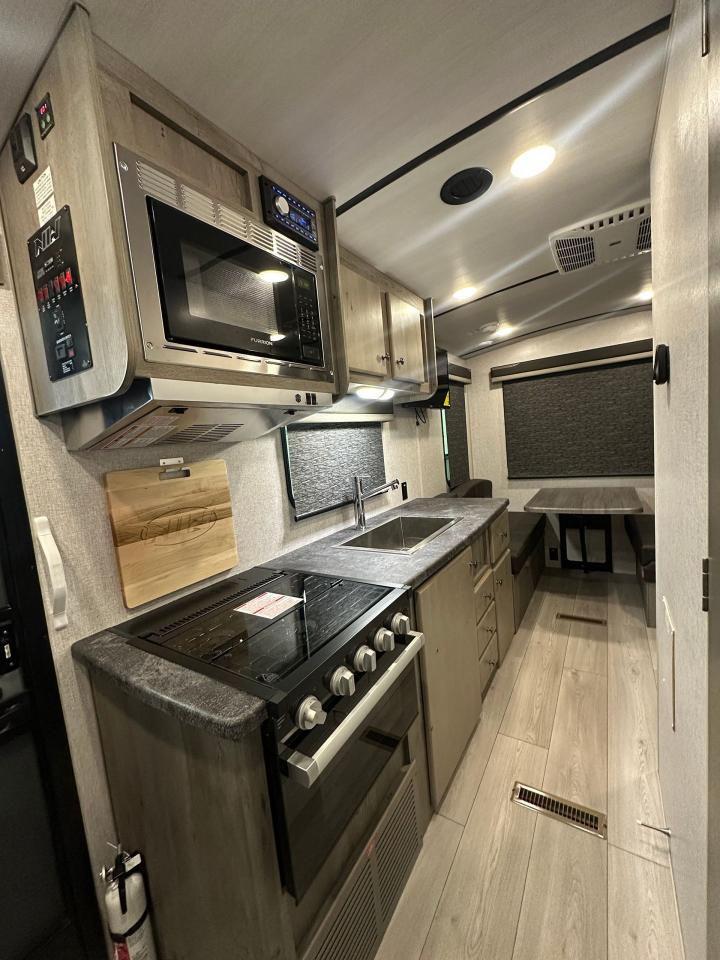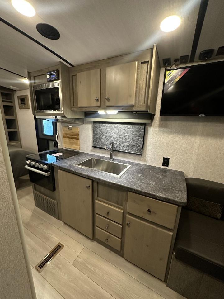 LED Lighting, SolX4 400W Solar Package, Microwave w/ Air Fryer, 10 Cu Ft 12V Refrigerator, Interior Command Center, Charge Wizard, LPG Quick Connect, Black Water Flush System, Exterior Shower, Winterization & Bypass System, 10 Gal Gas/Elec Water Heater, Ducted AC with Digital T-Stat, Exterior Speakers, 12V LED Awning, TV Antenna, Battery Disconnect